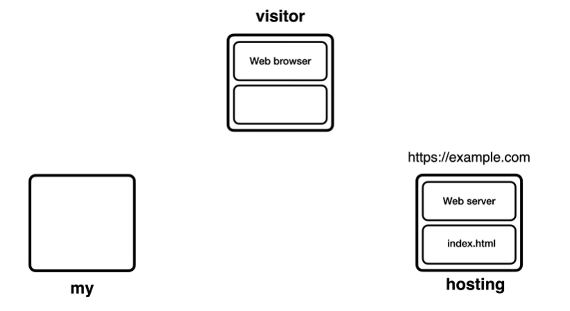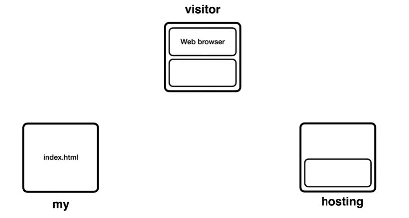 1. 세 개의 컴퓨터가 있는데, 웹사이트소스코드(index.html)를 갖고있는 나의 컴퓨터, 웹사이트에 방문하길 원하는 컴퓨터, 서비스를 제공해주는 호스팅업체