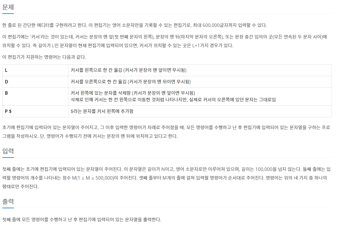 deque<char> cursorRight;//커서를 기준으로 오른쪽에 담기는 내용