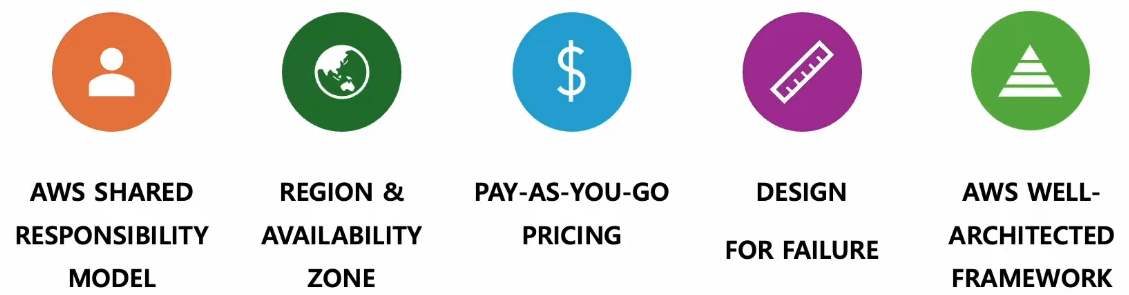 - 운영 우수성, 보안, 안정성, 성능효율성, 비용최적화, 지속가능성