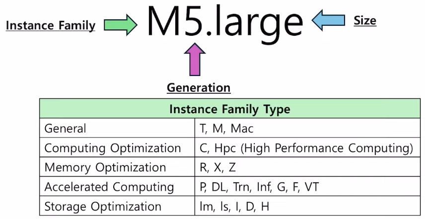 - EC2의 컴퓨팅에 대한 유형