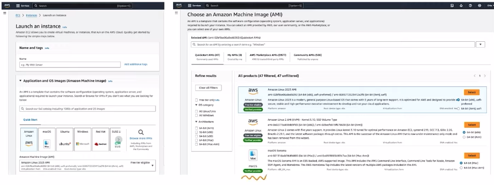 - 사용자는 EC2를 만들때 원하는 AMI의 이미지를 선택한다. (macOS, 아마존 리눅스 등)