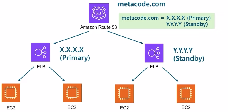 - e.g. metacode.com → 해당되는 IP주소를 매핑 → 해당 IP 주소가 연결되어 있는 ELB로 연결 → 들어온 트래픽을 EC2 인스턴스에 분배