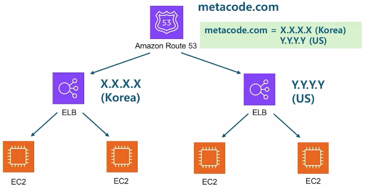 - e.g. metacode.com을 Korea에서 입력 → Korea에 있는 ELB 서비스에 연결