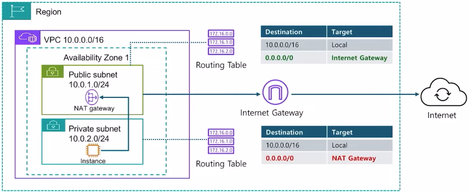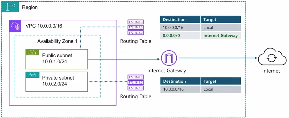 - VPC에서 인터넷을 접속하기 위한 인터넷 게이트웨이