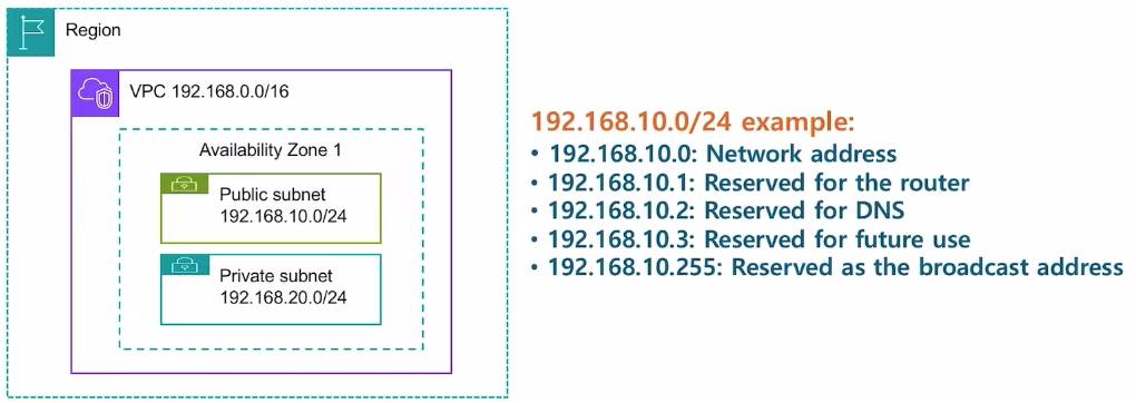- 서브넷은 VPC보다 네트워크를 더 작은 범위로 분할하여 관리할 수 있게 해주며