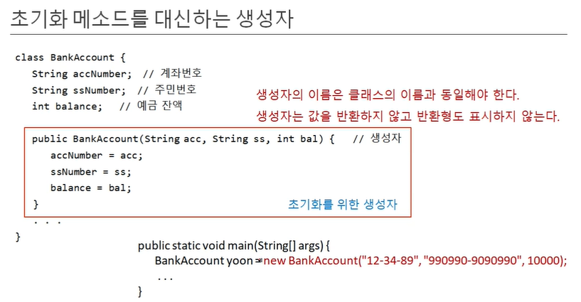 new BankAccount(809, 000314, 10000); //매개변수가 3개인 생성자 호출(데이터 초기값으로 인스턴스생성)