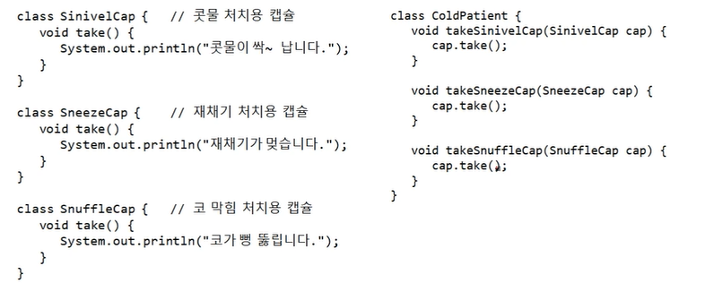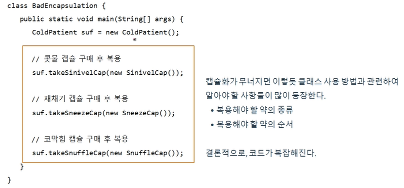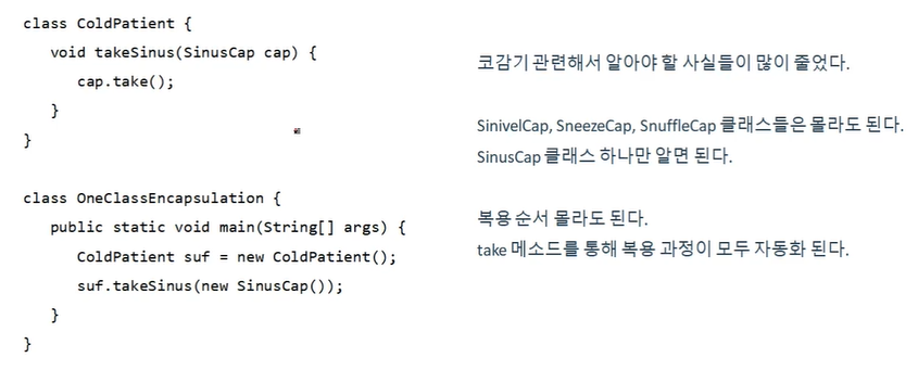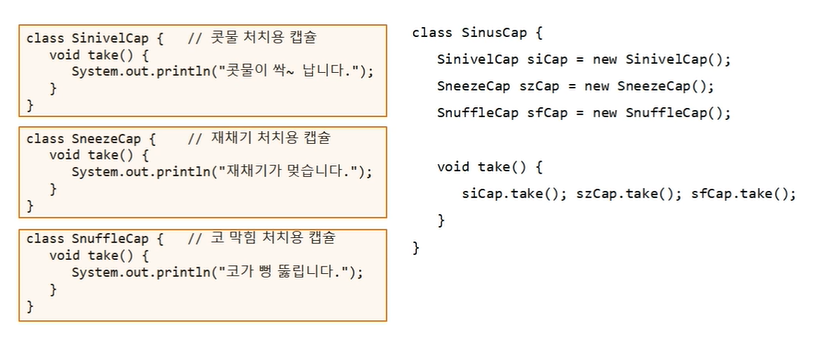감기약에 관련된 캡슐로 캡슐화한다! >>> Take()를 부르기만 하면 순서에 맞게 사용할 수 있게 된다.