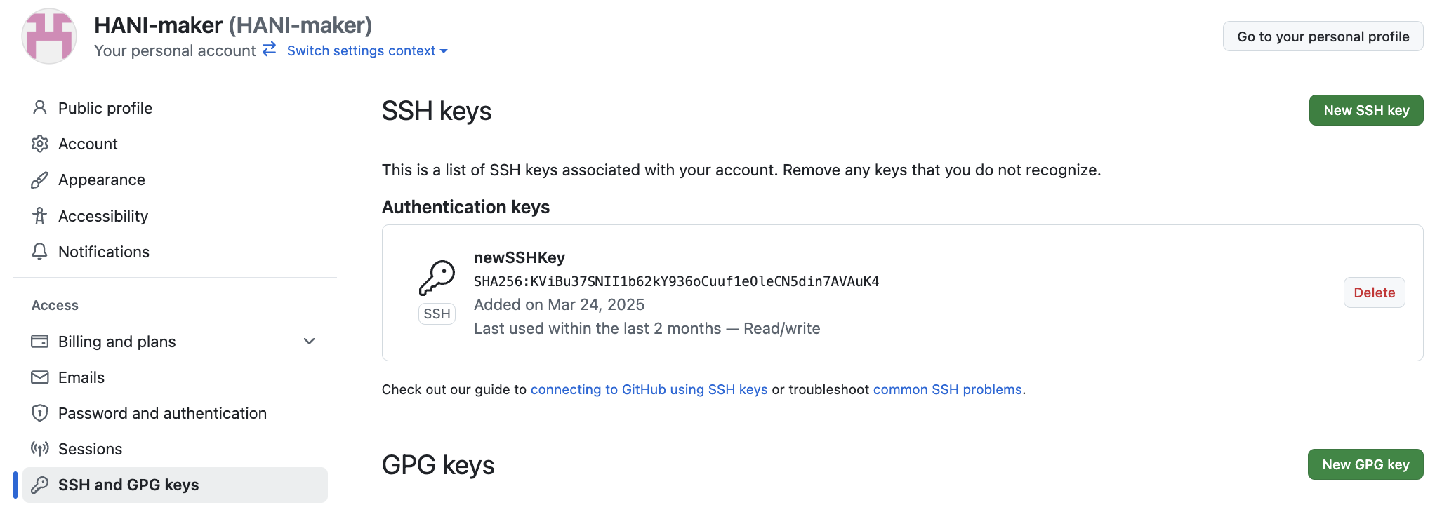 그러면 이렇게 SSH Key가 생성된 것을 확인할 수 있다!