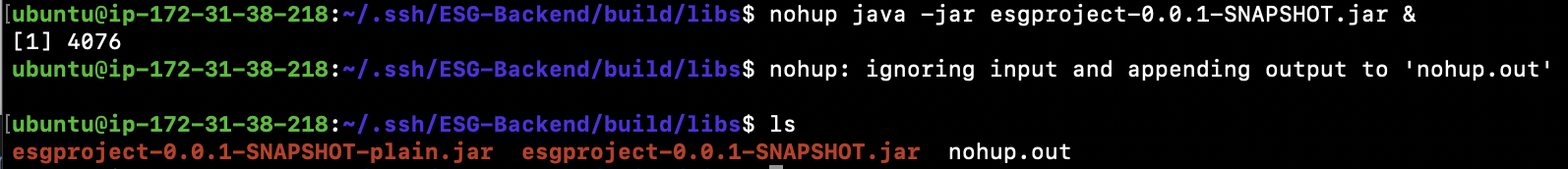 nohup java -jar [프로젝트 이름-SNAPSHOT.jar] &