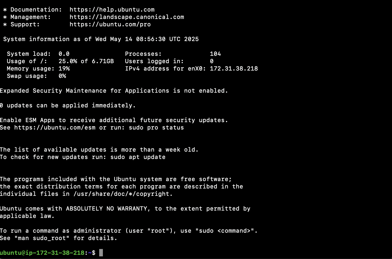 이런 화면이 나오면, 우분투 ssh 접속에 성공한 것이다!