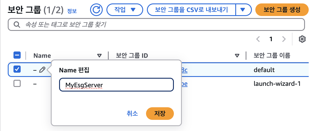 이름이 없는 보안그룹의 이름을 설정해준다.
