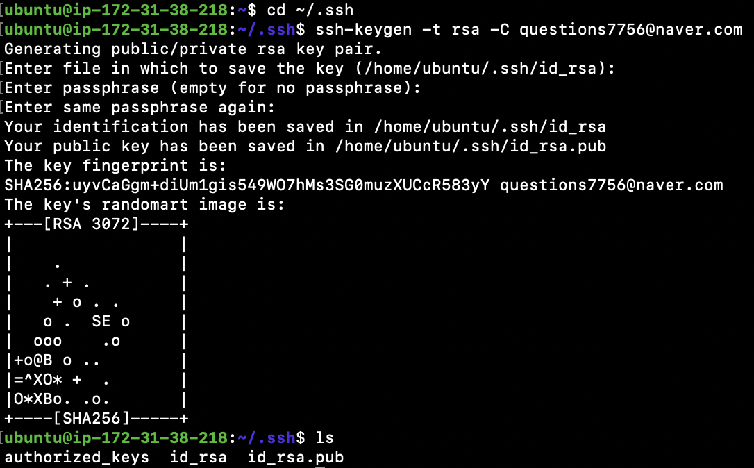 # /.ssh 디렉토리에서 키페어를 생성하도록 한다.