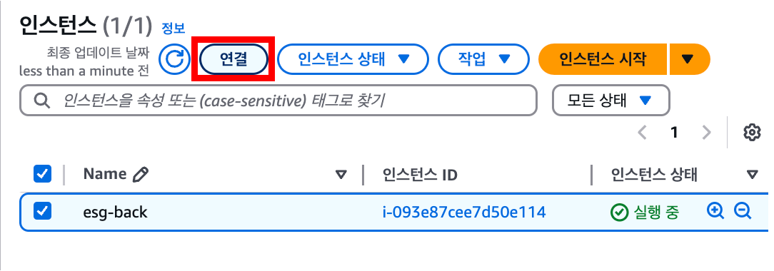 연결을 원하는 인스턴스에 체크표시✅ 선택 후, 연결 버튼 클릭