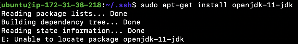 이때, 위와 같이 "Unable to locate package openjdk-11-jdk" 라는 오류 메시지가 발생한다면