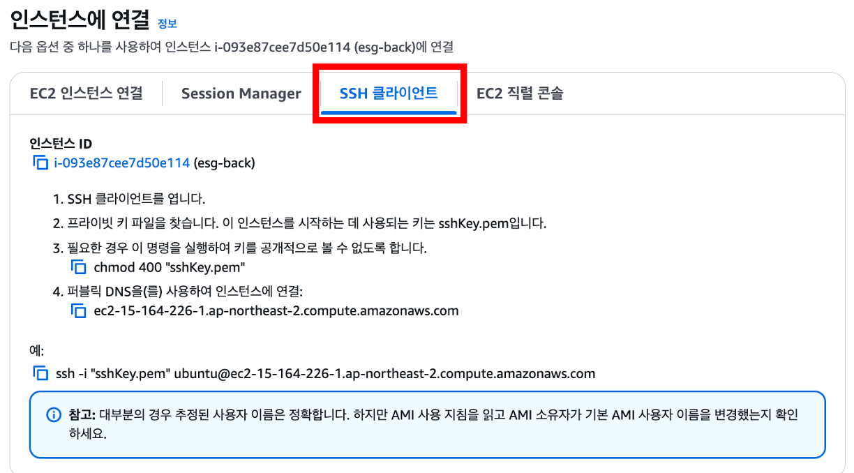 ssh -i "sshKey.pem" ubuntu@ec2-15-164-226-1.ap-northeast-2.compute.amazonaws.com