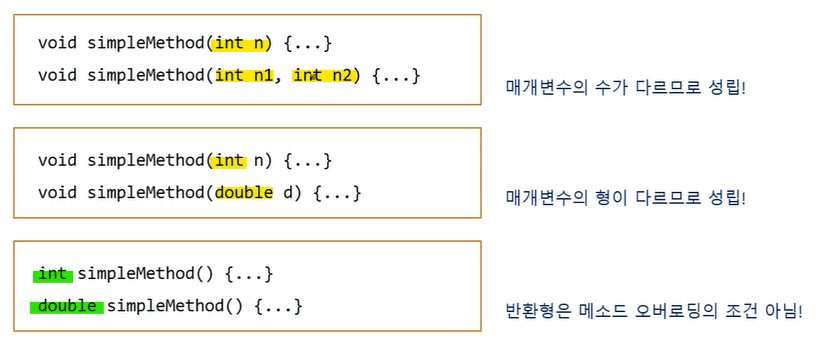→ 따라서 이 둘중 하나의 형태가 다른 메소드를 정의하는 것이 가능하다.