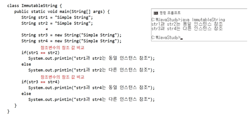 둘 다 String 인스턴스의 생성으로 이어지고 그 결과 인스턴스의 참조 값이 반환된다.