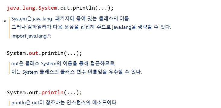 (1) System.out.println()에서 out과 println의 정체는?