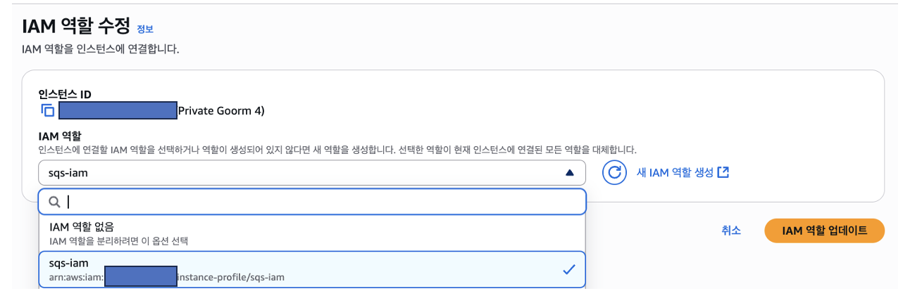 EC2 > 인스턴스 > 작업 > 보안 > IAM 역할 수정