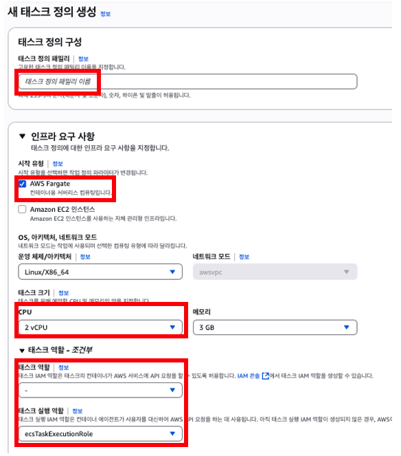 ECS > 태스크 정의 > 새 태스크 정의 생성