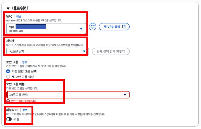 VPC와 보안그룹은 기존 EC2 서버에서 사용할 때 썼던 것으로 사용했고,