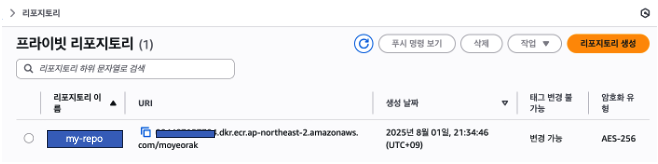"repositoryUri": "[AWS ID].dkr.ecr.ap-northeast-2.amazonaws.com/my-backend",