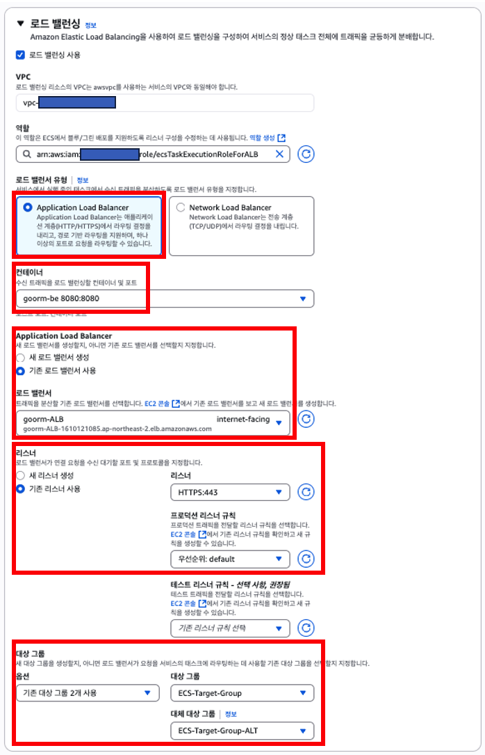 사실 로드밸런서는 기존에 EC2 배포할때 사용하던 ALB를 그대로 사용하는 방식이라,