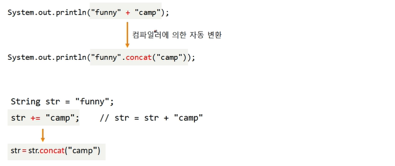 str3 = str1.concat(str2) : str1 뒤에 str2를 붙인 새로운 문자열을 str3에 저장하라