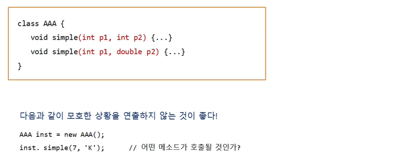 → 따라서 이 둘중 하나의 형태가 다른 메소드를 정의하는 것이 가능하다.