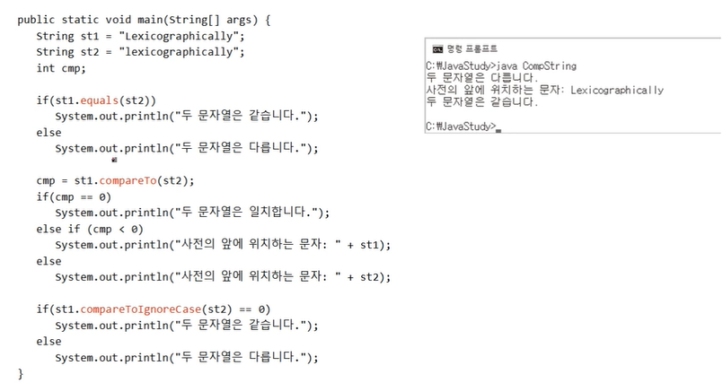 cmp = str1.compareTo(str2)는 str1 - str2를 연산하고, 그 결과를 cmp에 저장한다.
