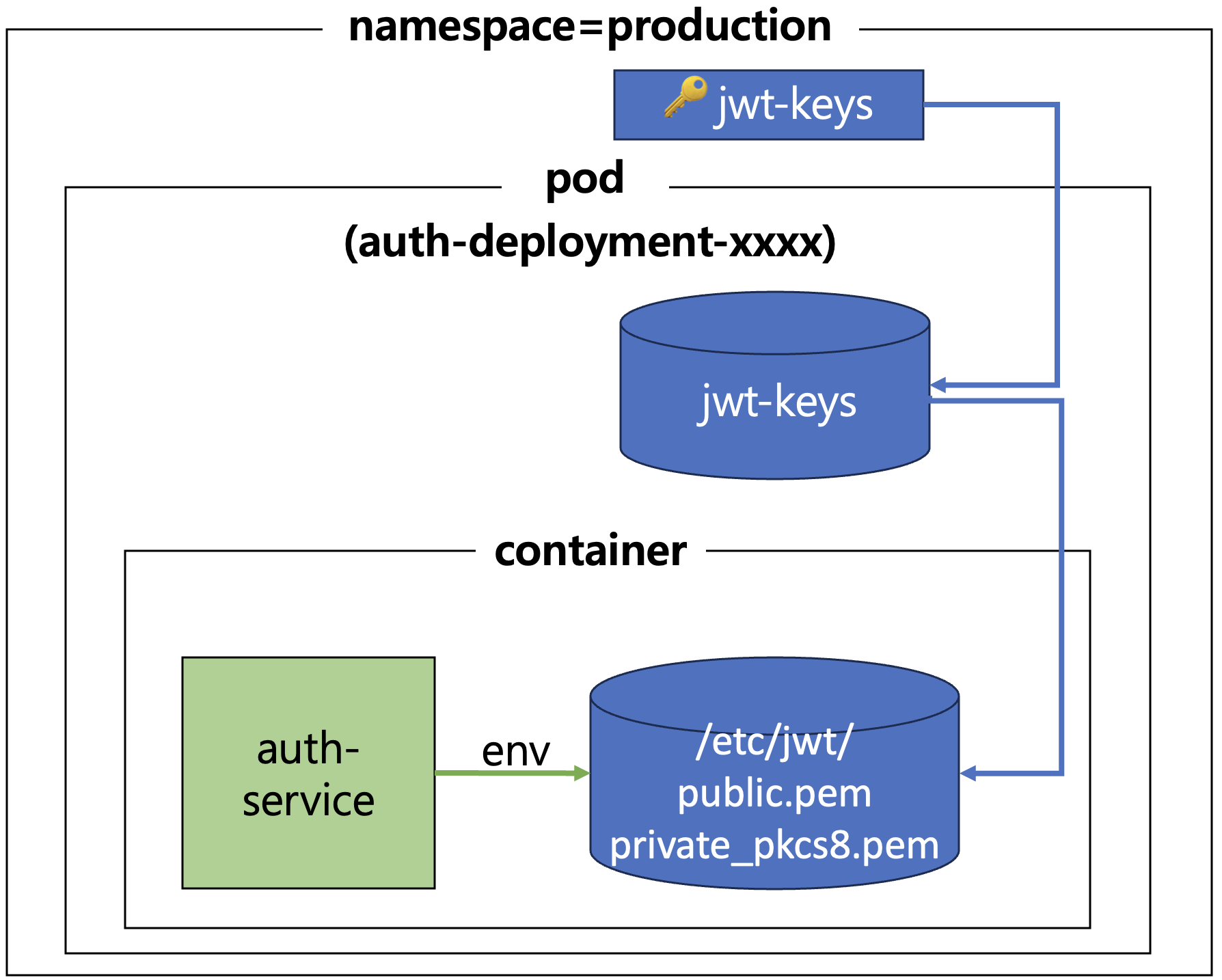 이를 통해, 애플리케이션은 실행할 때 필요한 키값의 위치를 /etc/jwt에서 찾을 수 있다.
