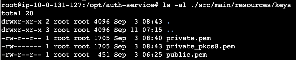 - 이를 통해 컨테이너 내부에서는 /etc/jwt/private_pkcs8.pem, /etc/jwt/public.pem 파일이 자동 생성된다.